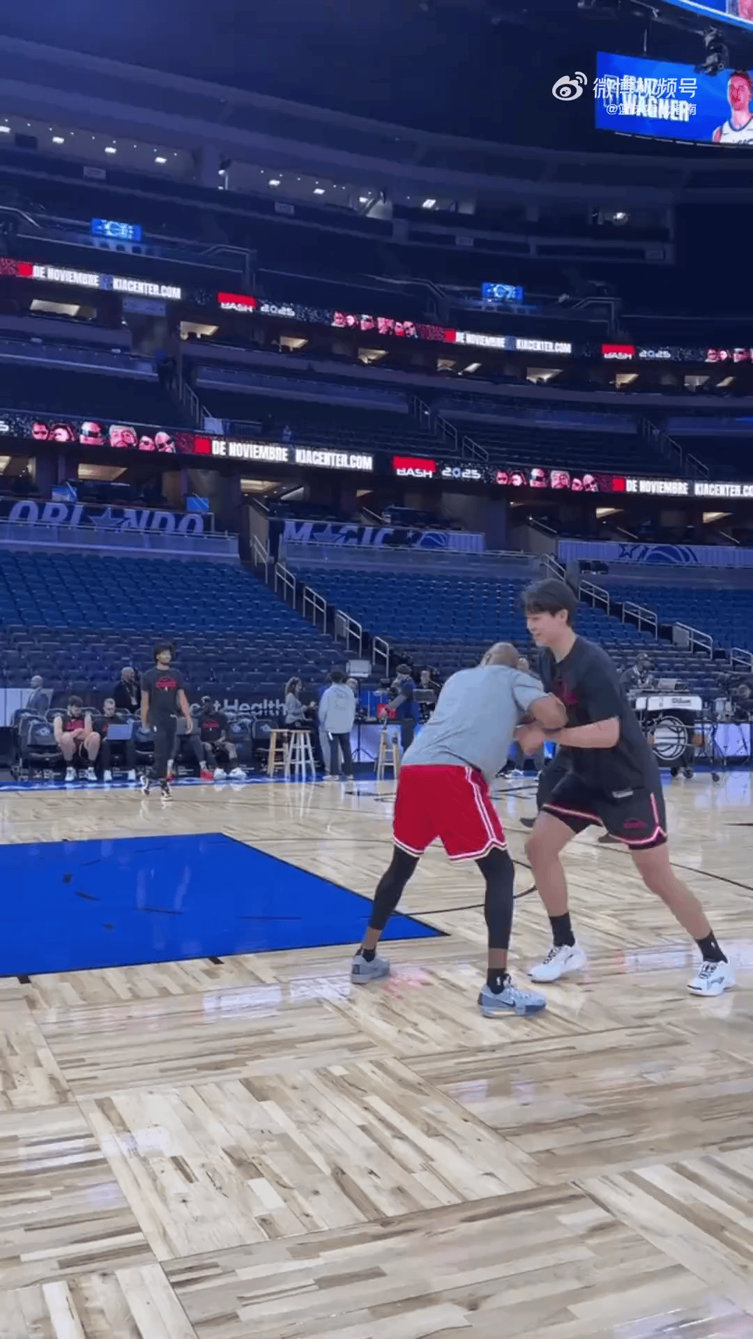 杨瀚森对阵魔术赛前热身回顾,继续打磨低位技术