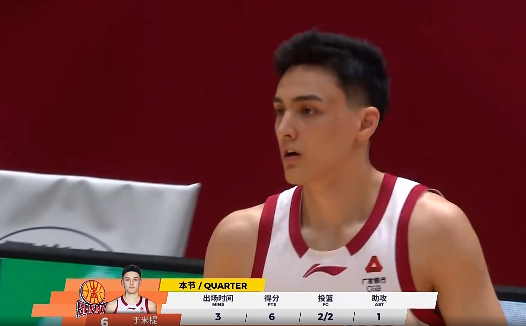冯傲全场投篮10中5,三分1中0得到10分6篮板1助攻