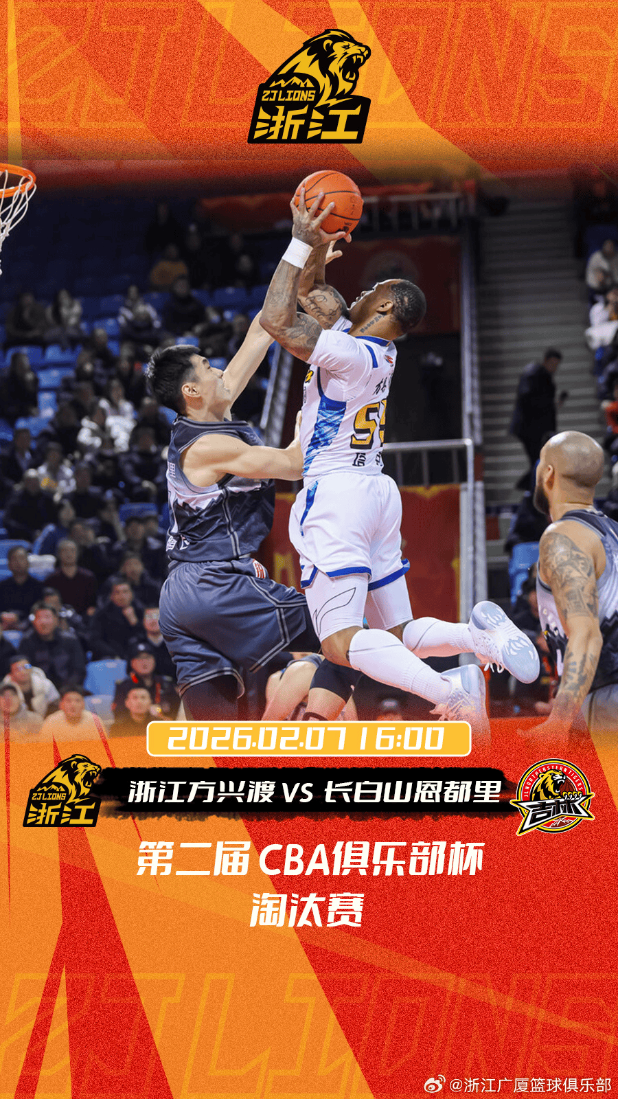 广厦男篮发布赛事预告:今日俱乐部杯淘汰赛将对阵吉林