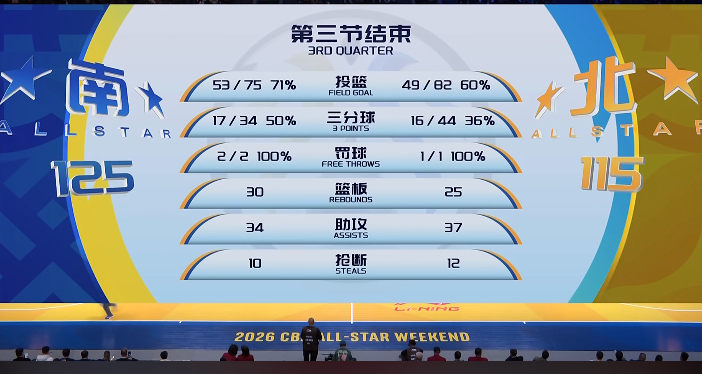 全明星正赛:南区三节125-115领先北区,徐杰23分&徐昕21分