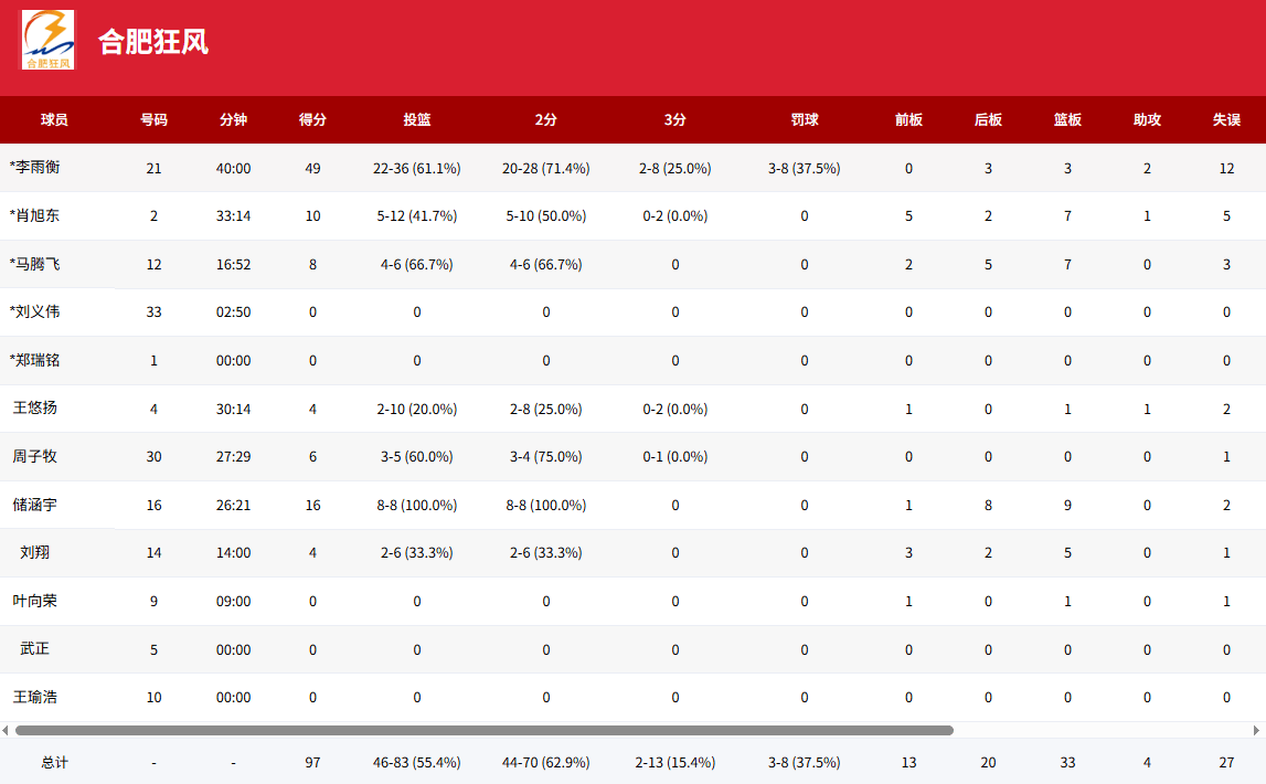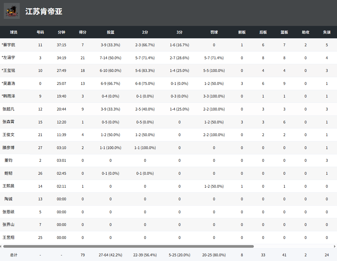 高柏铠全场出战33分钟,11中8得到23分4篮板4盖帽