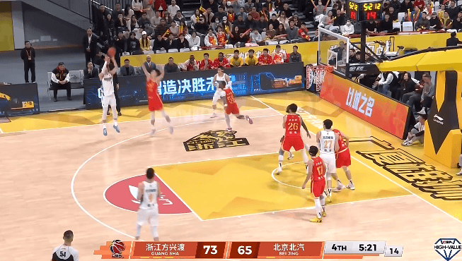 陈家政底角接球压哨三分命中,王洪泽回防大帽里勒上篮