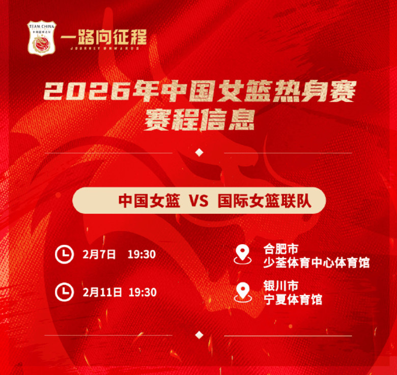 中国篮球之队分享预告:中国女篮将于7日&11日对阵国际联队
