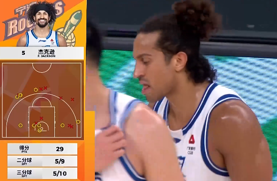 杰克逊跳投三分再中单节4中4拿11分,已经砍下29分
