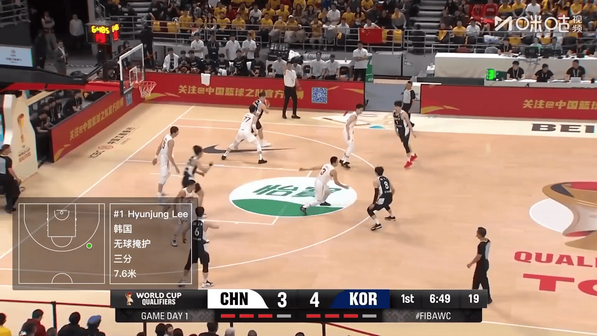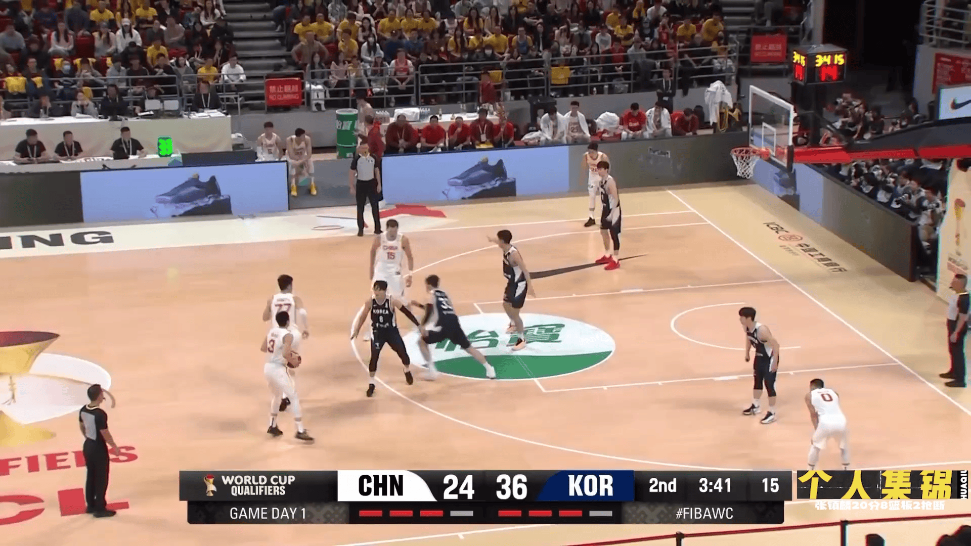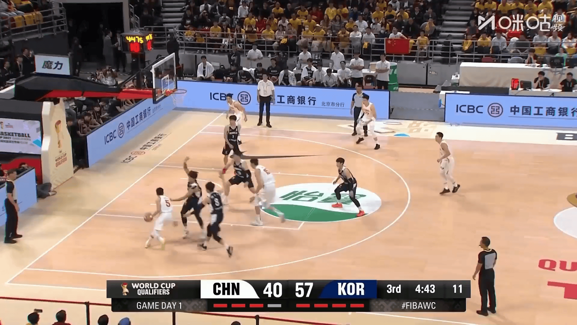 男篮预选赛:廖三宁10分&李贤重20分,中国半场34-47韩国