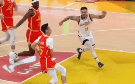 虎扑鄢手骐阻挡哈姆雷特被吹违体,王岚嵚髋部受伤在场边治疗