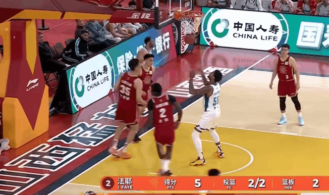 闫鹏飞中距离跳投稳稳落袋,首节两投全中砍下4分3篮板