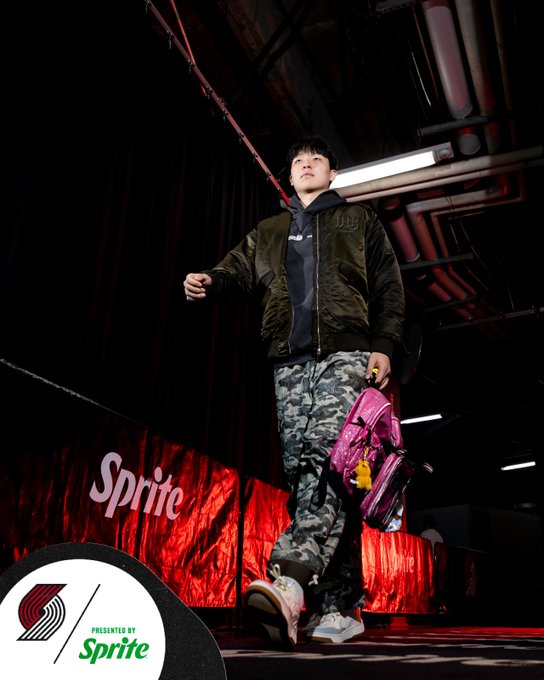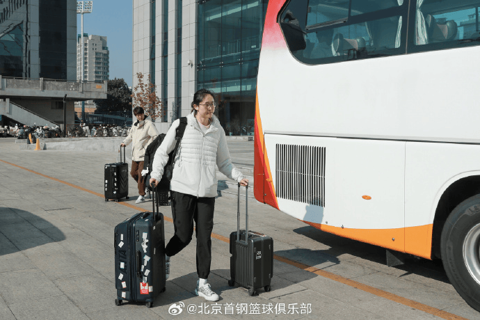 开拓者社媒分享球队赛前图集:杨瀚森手持粉色书包入镜