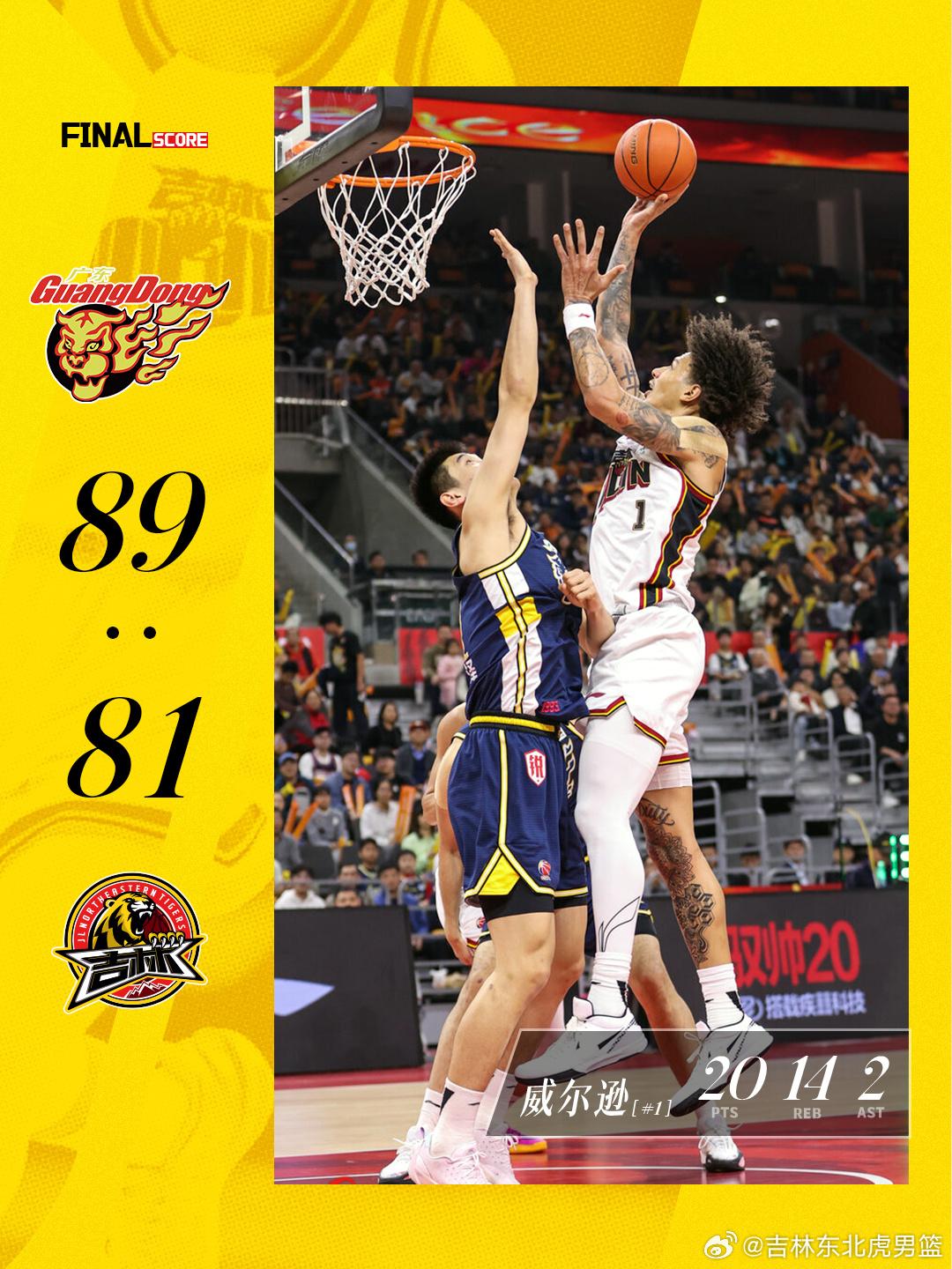 吉林男篮官方发布终场海报:客场不敌广东,战绩来到8胜13负