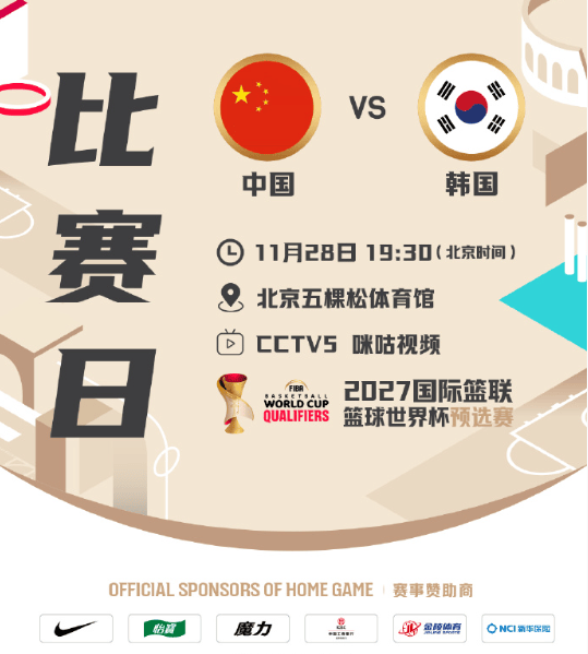 中国篮球之队:男篮世界杯预选赛中国男篮主场迎战韩国男篮