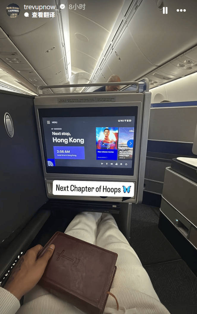 来了!特雷夫林-奎因社媒分享登机照,目的地为中国香港