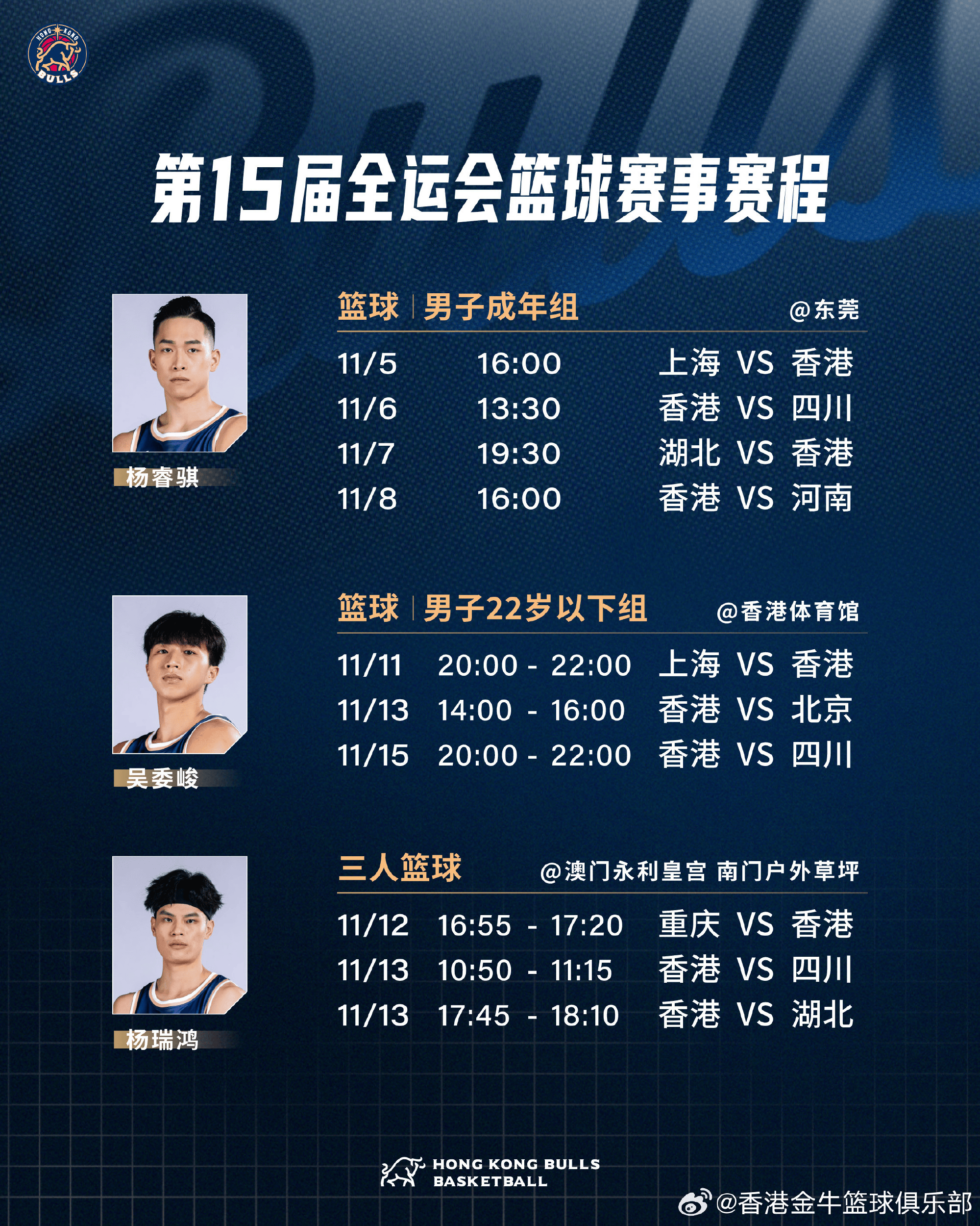 香港金牛分享全运赛程:杨睿骐&吴委峻&杨瑞鸿将出战全运会