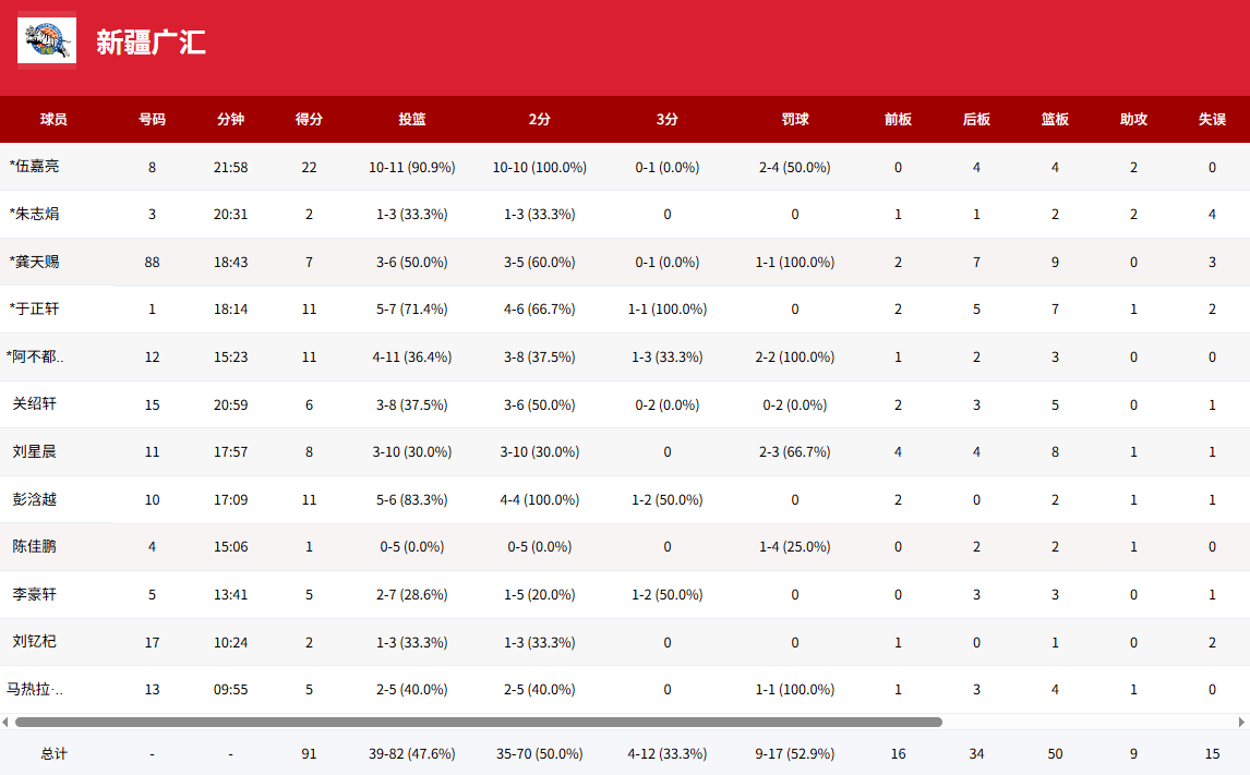 U19全国赛:伍嘉亮22分,新疆U19男篮91-71战胜吉林
