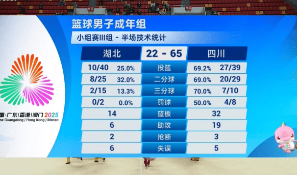 全运会男篮:胡金秋13分&周琦12分,四川半场65-22领先43分