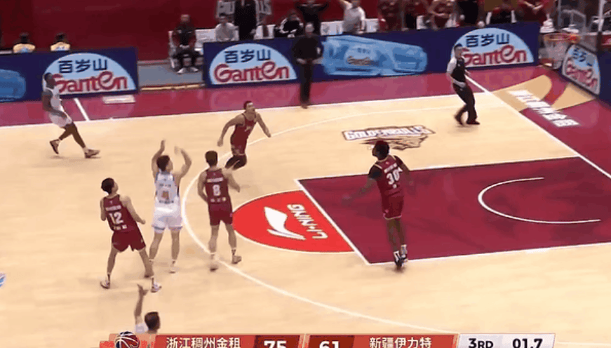 孙铭徽底角压哨三分投进,广厦上半场46-43领先北京