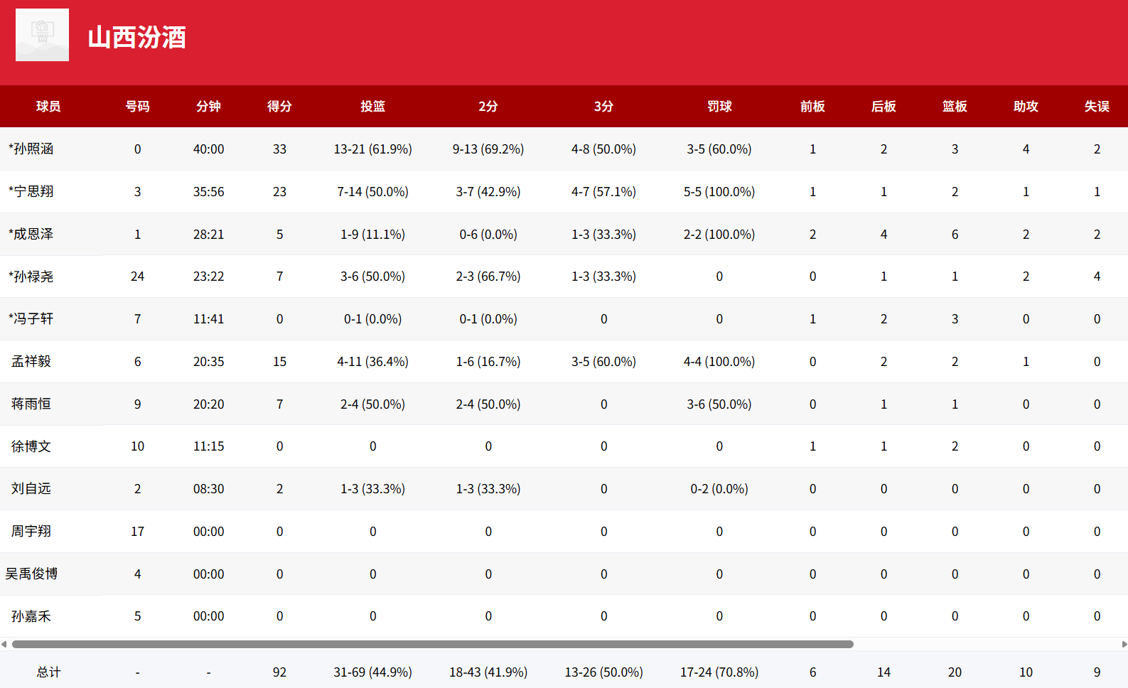 U19全国赛:孙照涵33分,山西U19男篮92-84战胜浙江