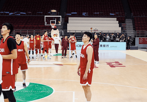 博主分享中国男篮热身画面:王治郅帮助周琦热身训练