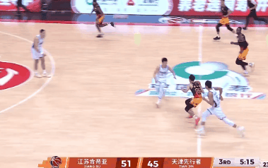 庞峥麟一条龙过掉3人送出妙传,亨特篮下接球不攻传给队友