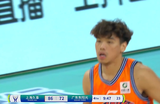 马典成接球三分投进拿11分,上海末节开局领先广东14分