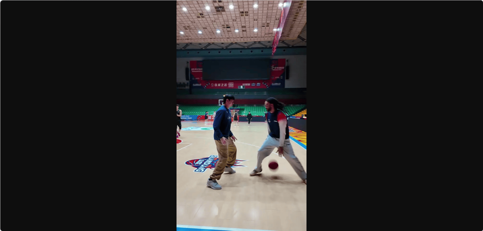 山东男篮社媒晒外援与邱彪趣味单挑片段:无须多言
