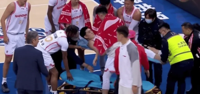 冯熙瑞防守时重摔倒地不起,随后被担架抬离球场