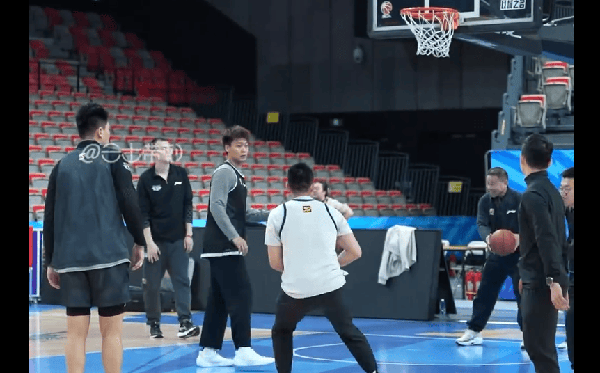 媒体人分享陈盈骏赛前踩场训练片段:练习对抗后的出手!
