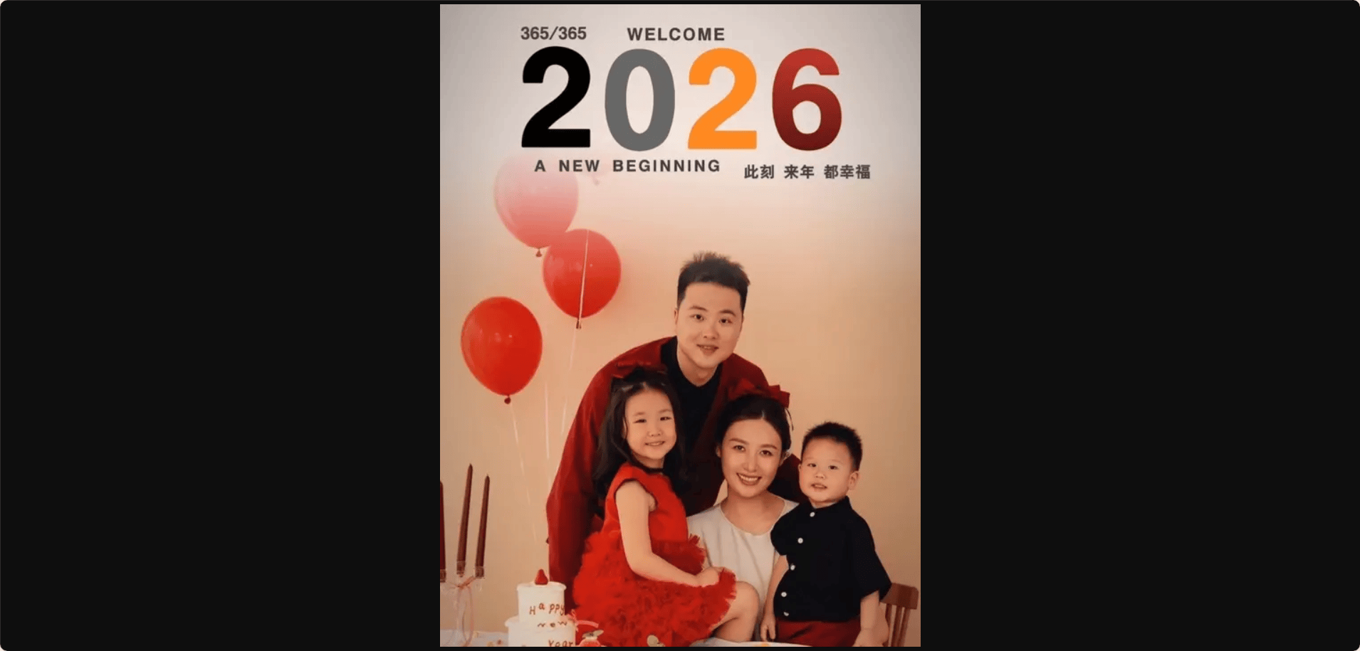 孟铎更新社媒分享视频:2026大家都幸福 一家四口共用一张脸