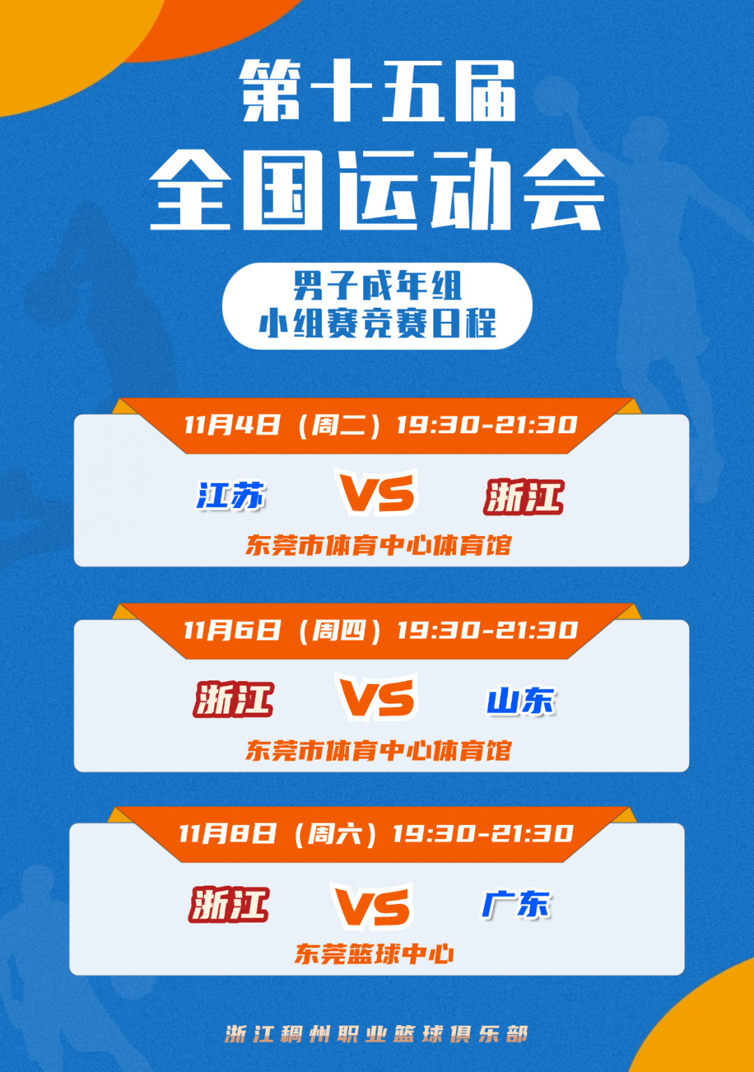 浙江男篮分享全运会赛程:今晚男子成年组将迎战江苏