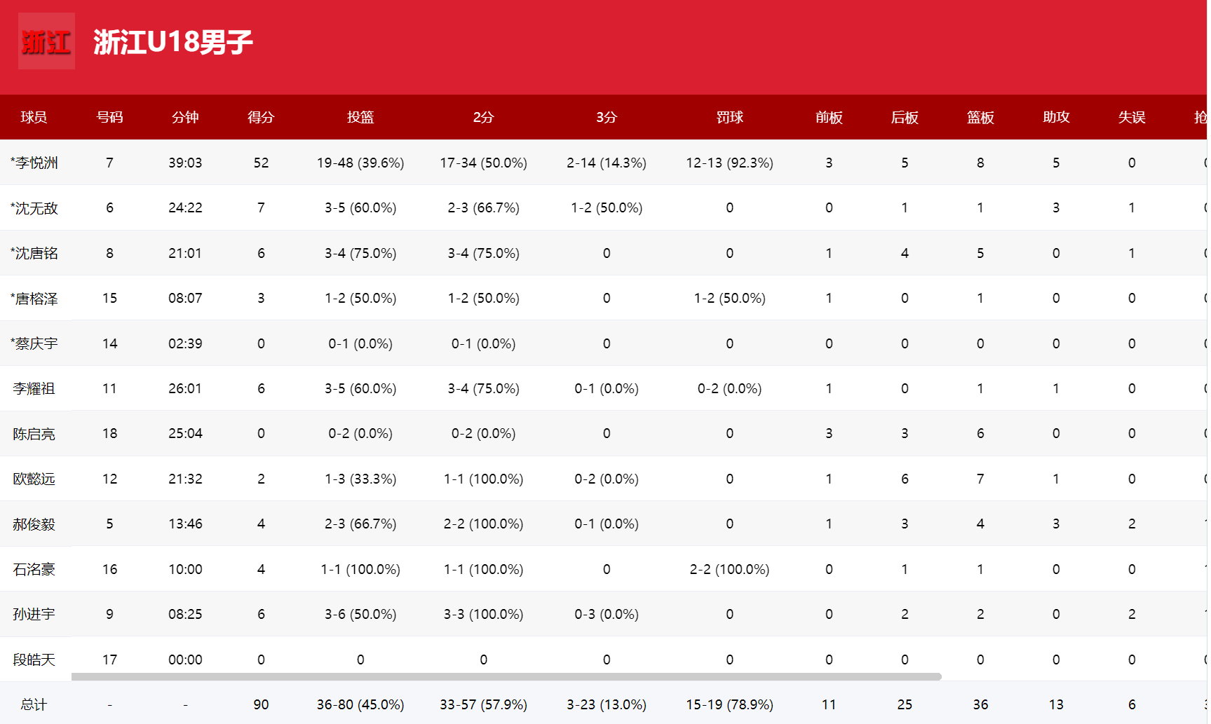 浙江男篮官方发文:李悦洲44分,浙江U18男篮憾负山东
