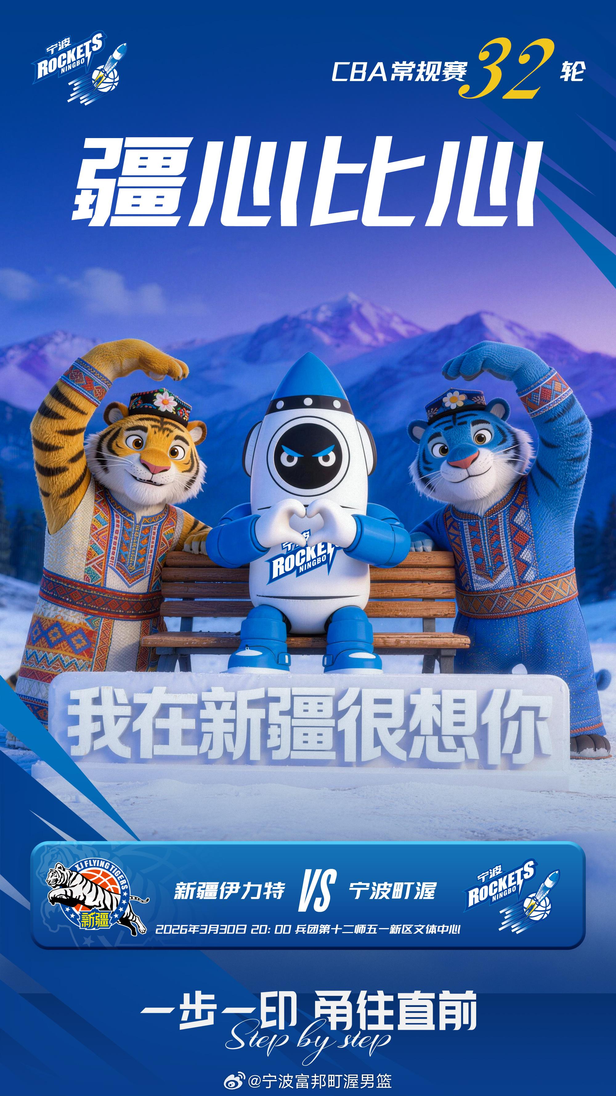 宁波男篮社媒分享比赛预告海报:球队将明日对阵新疆男篮