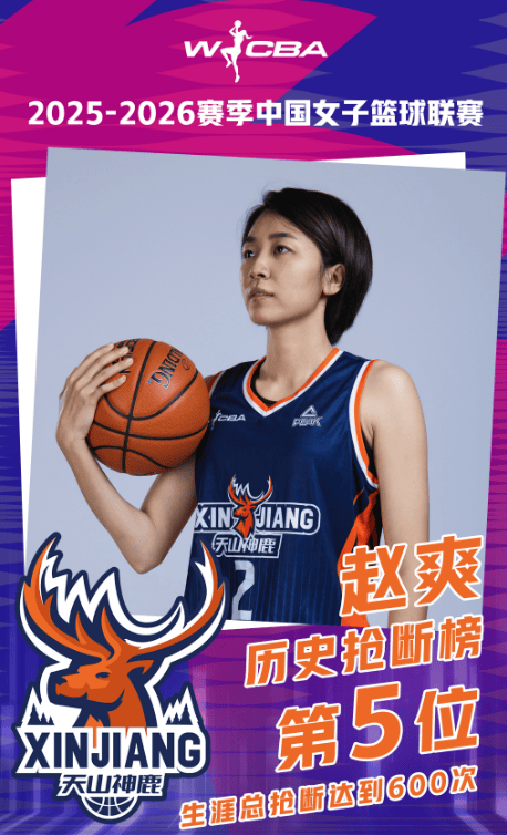 WCBA官方:昨晚赵爽贡献3次抢断,生涯总抢断次数达到601次