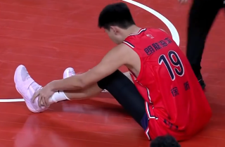徐昕扣篮下落时扭伤脚踝,随后单脚跳着走回更衣室