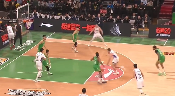 赵岩昊快攻反击欲上篮,约克高高跃起送上钉板大帽