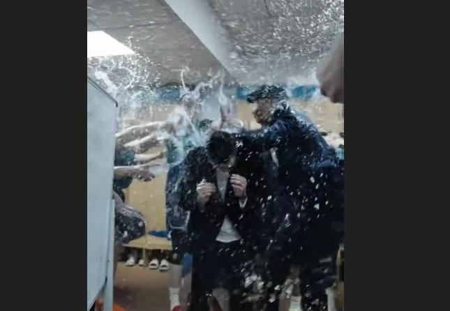 建队后首次打进季后赛!赛后宁波众球员纷纷向主教练泼水庆祝