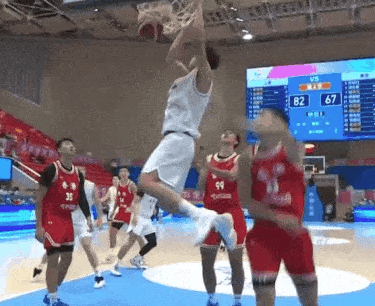 全运会:李添荣突破后单手內传内,闫鹏飞顺势起飞双手暴扣