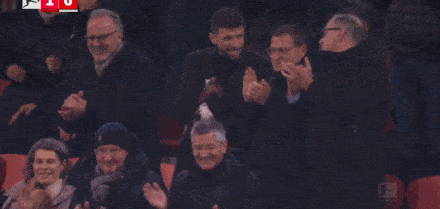 导播镜头切到观众席,穆勒欣喜庆祝进球