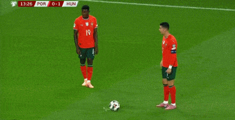 C罗跟门德斯任意球沟通失误,直接交出球权