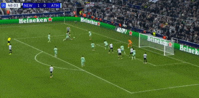 欧冠:纽卡2-0毕包,伯恩开场破门,乔林顿锁定胜局