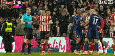 双方场上冲突,伊西多尔、佳夫、威洛克吃到黄牌
