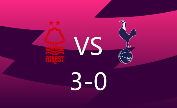 3球完胜,诺丁汉森林取得了1987年以来对阵热刺最大比分胜利