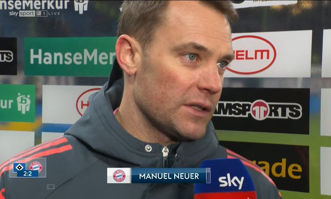 诺伊尔:这场平局感觉像失利,我们创造出了更多的机会