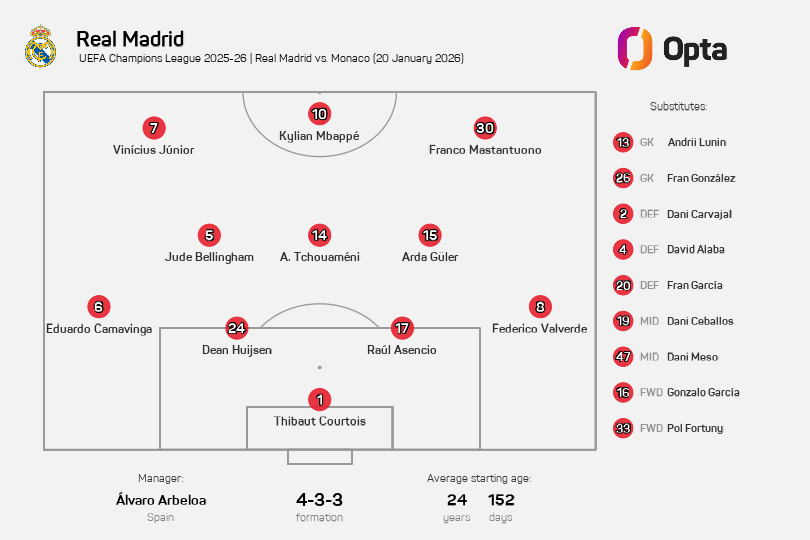 维尼修斯助攻梅开二度,马斯坦托诺破门,皇马3-0摩纳哥