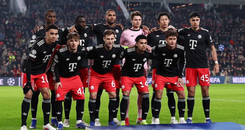 拜仁本轮欧冠穿的是黑红黑拼色球衣,球裤甚至是门将球裤