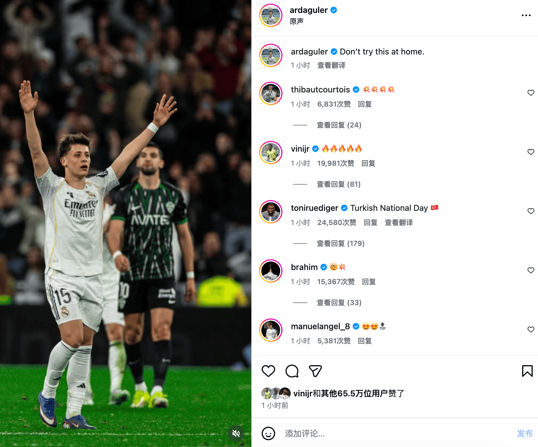 居莱尔社媒晒神仙吊射:请勿在家模仿;吕迪格评论:国庆日