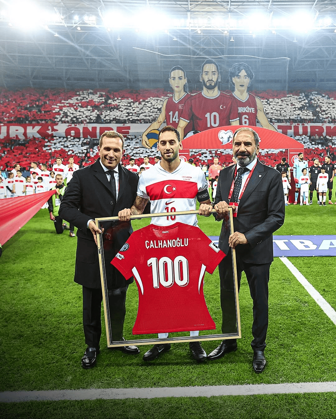 恰尔汗奥卢收获百场纪念,社媒发文:为身为土耳其人而自豪