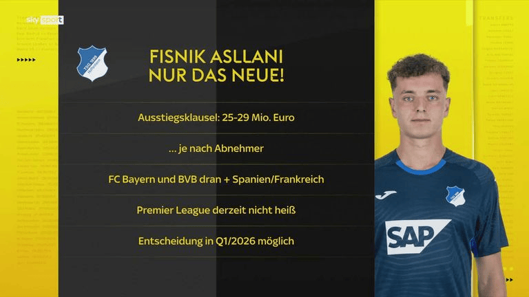 德天体:拜仁有意霍村前锋阿斯拉尼,解约金2500-2900万欧元