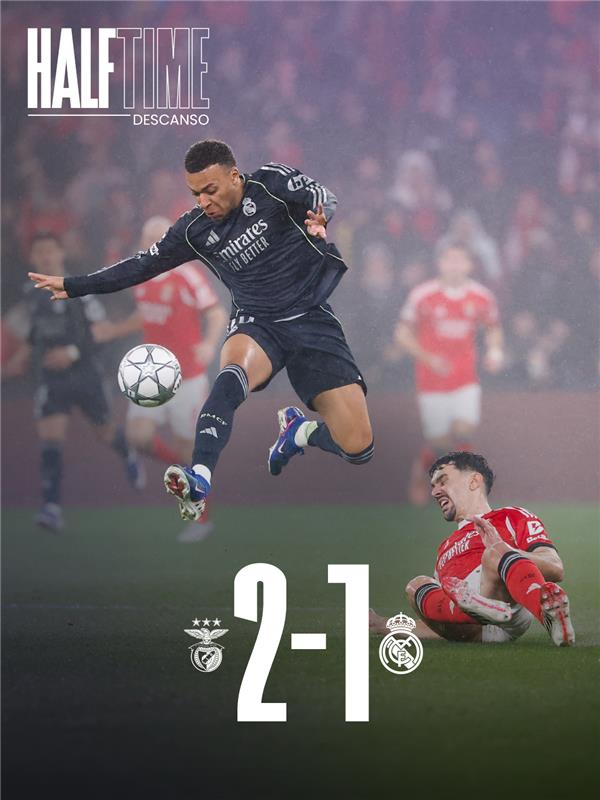战皇马双响,官方:本菲卡前锋谢尔德鲁普当选本轮欧冠最佳