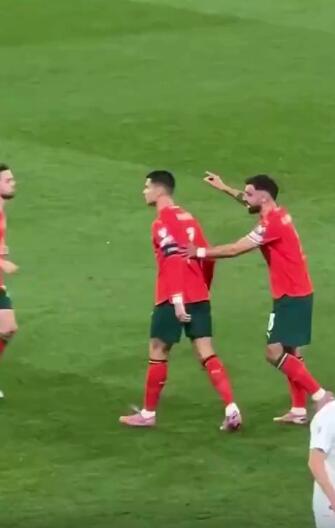 C罗失点后情绪低落自言自语,B费看见后上前鼓励他