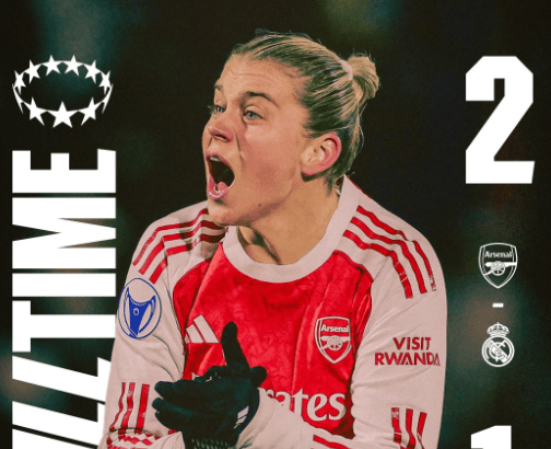 女足欧冠阿森纳2-1逆转皇马,鲁索梅开二度,凯莉献助攻