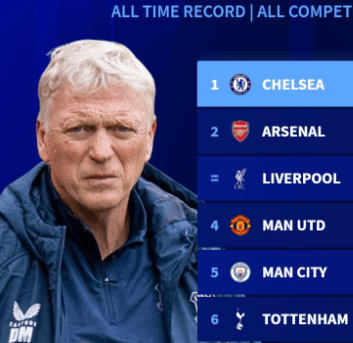 帕尔默代表切尔西英超打进39球,超越阿内尔卡,排名队史第9